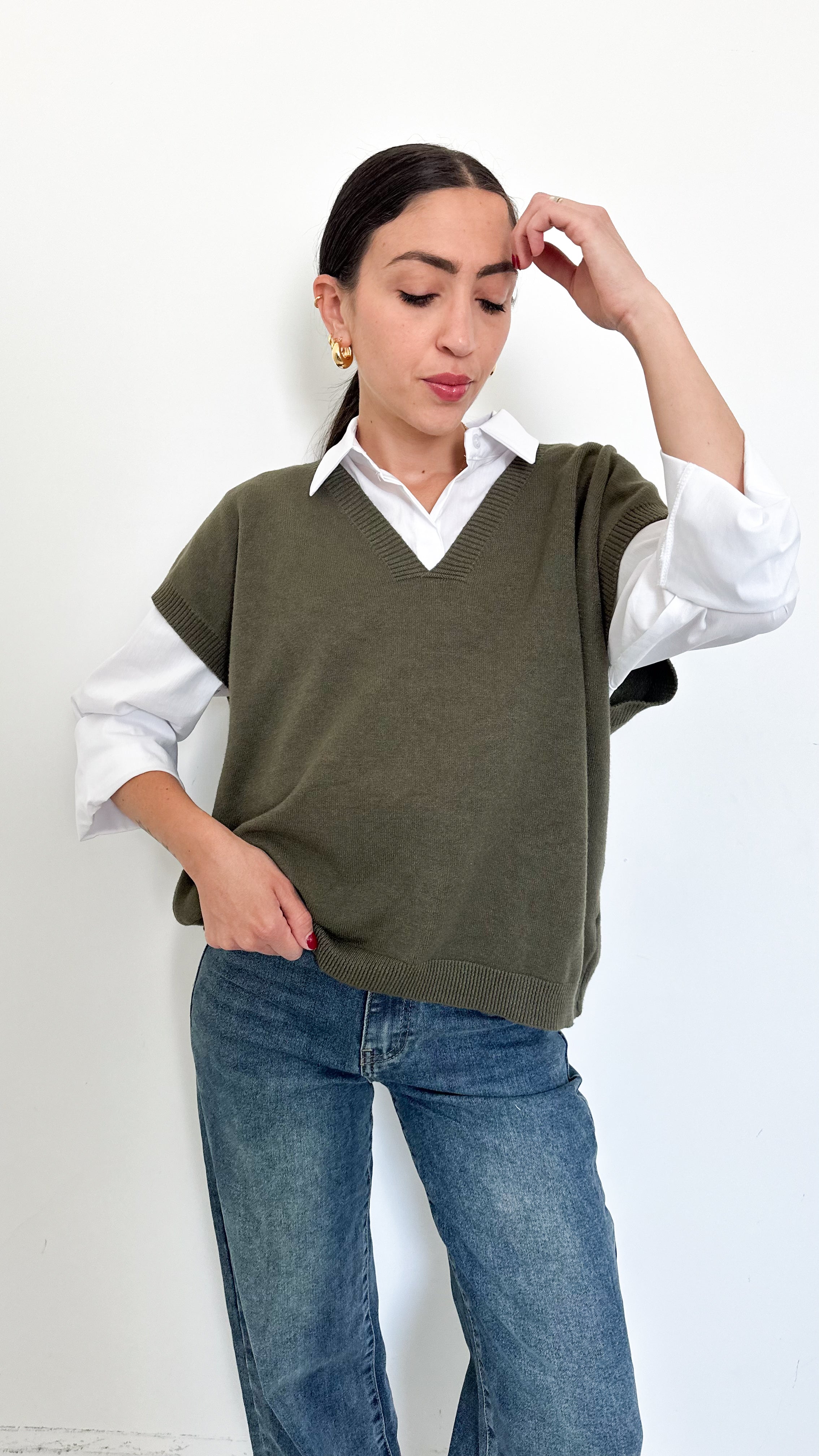 Gilet Verde Scollo A Punta
