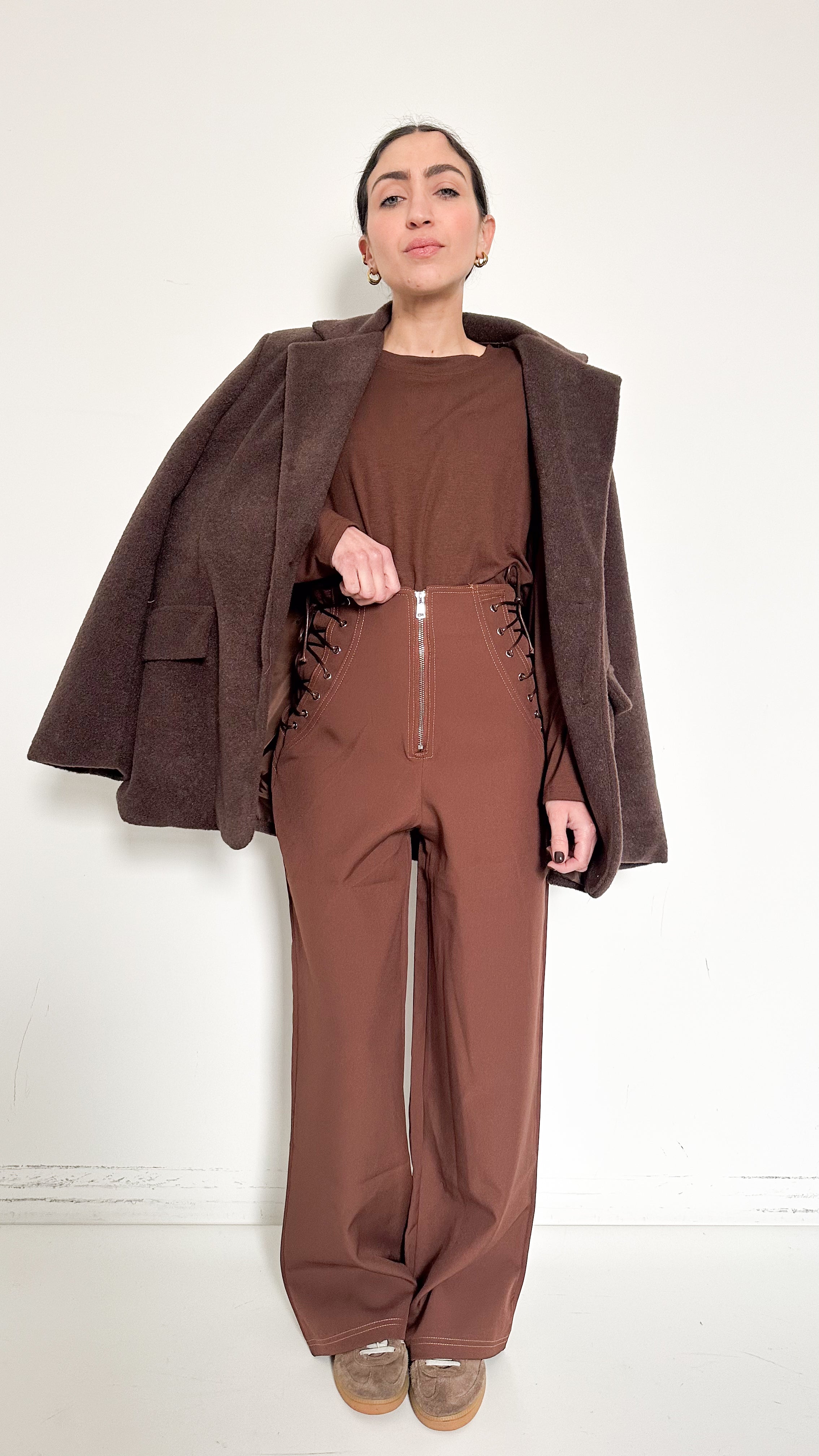 Pantaloni Marroni Con Lacci